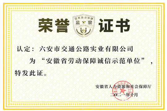 安徽省人力資源和社會保障局認(rèn)定公司為安徽省勞動保障誠信示范單位。