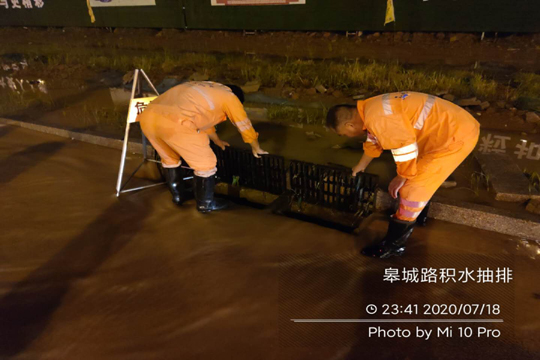 在六安市政工程管理處的安排下,我公司于17日晚立即組織70多人前往積水路段搶排內(nèi)澇、積水。經(jīng)過三天三夜日夜奮戰(zhàn),20日下午正陽路、壽春路、迎賓大道恢復(fù)通行,切實(shí)保障市民正常生產(chǎn)生活。