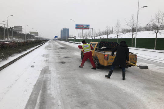 本次鏟冰除雪我公司平均每天投入除雪人員60人次、除雪鏟車6臺次、積雪轉運車5臺次、皮卡車14輛次,共撒鋪融雪劑(工業(yè)鹽)32.5噸、此次鏟冰除雪,公司共計投入資金約26萬元。