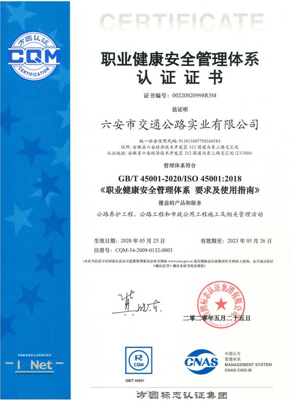 質(zhì)量、環(huán)境、職業(yè)健康安全管理體系認(rèn)證證書